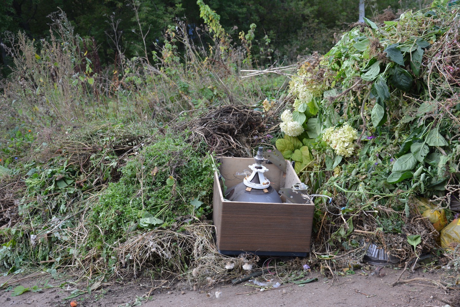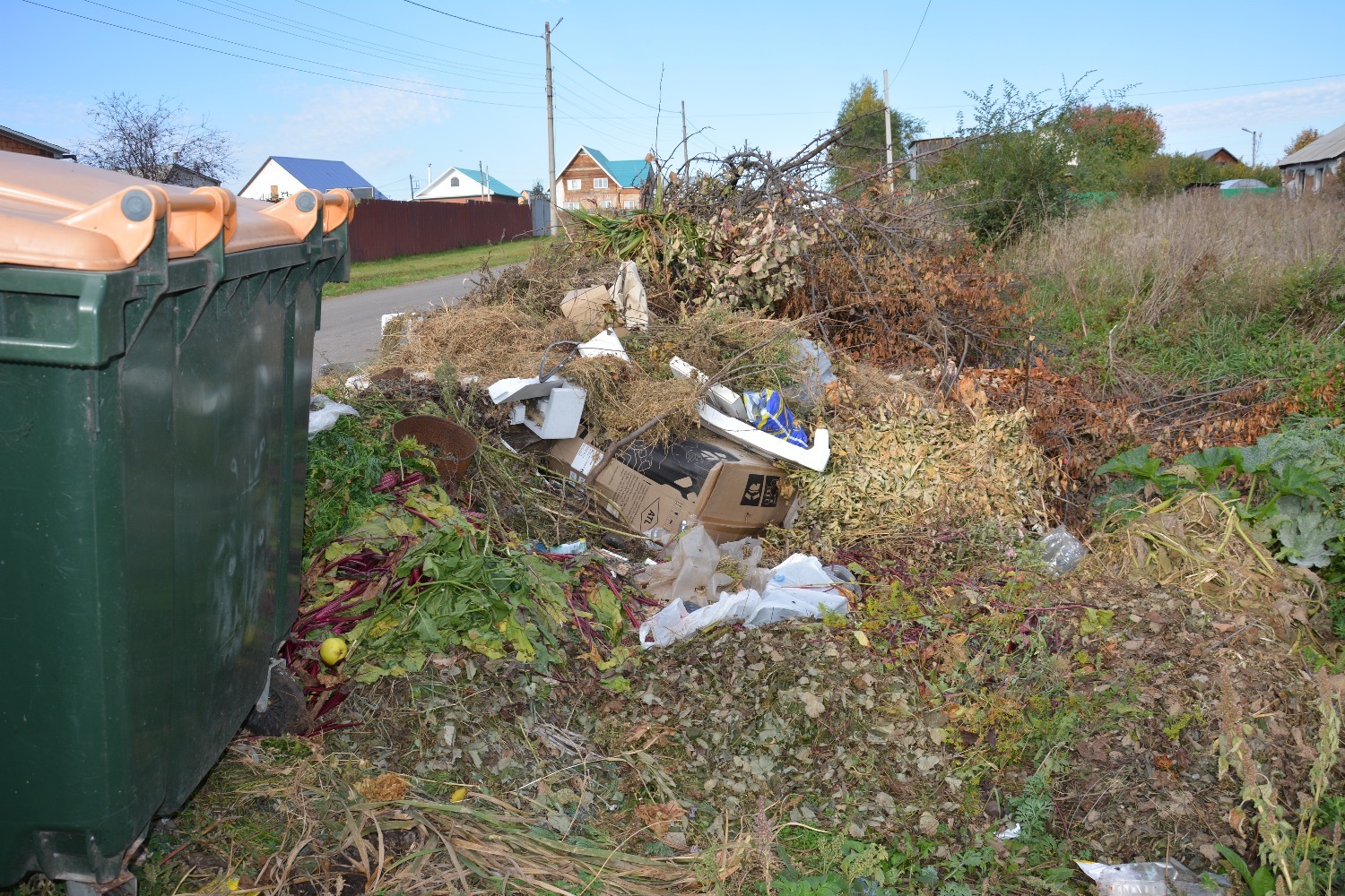 Растительные отходы в сезон представляют собой проблему. Они заполняют контейнерные площадки и прилегающую территорию настолько, что технике регионального оператора бывает сложно даже подъехать к мусорным бакам для их опорожнения. Зачастую, трава и ветки смешаны с гниющими овощами и фруктами, а также крупногабаритным мусором: здесь можно увидеть старую мебель, сантехнику, бытовую технику, шифер и битое стекло. Результат — устойчивый неприятный запах и антисанитария.