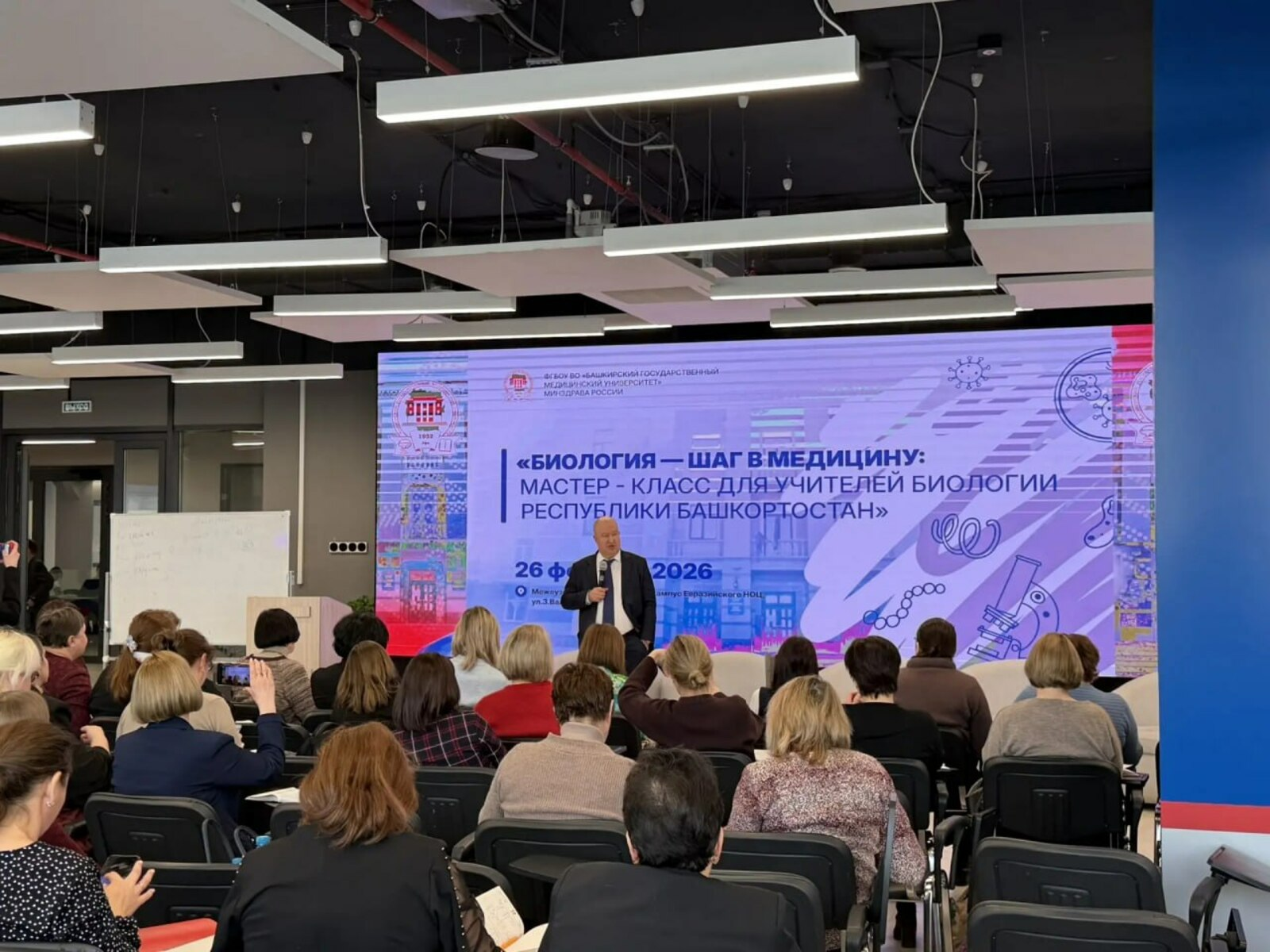 Башкирский государственный медицинский университет, являющийся резидентом Межвузовского студенческого кампуса Евразийского научно-образовательного центра (НОЦ), при поддержке Министерства просвещения Республики Башкортостан организовал в Кампусе республиканский семинар-практикум для учителей биологии под названием «Биология – шаг в медицину».