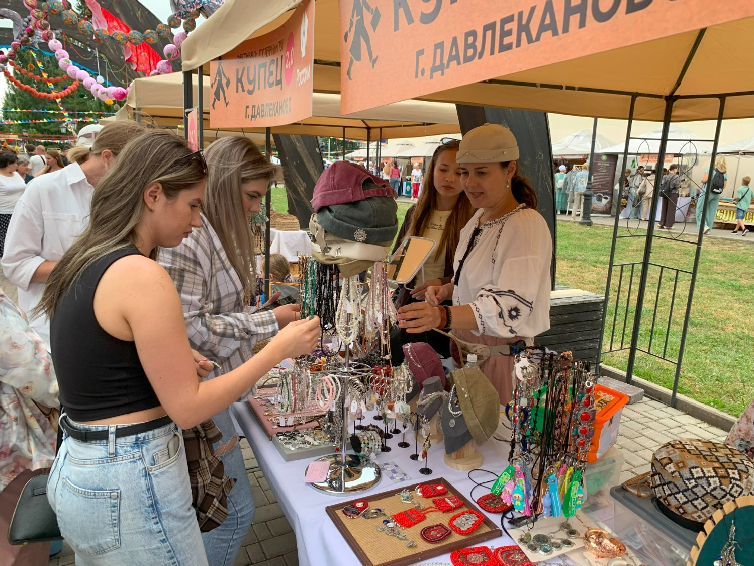 Вот уже три года мероприятие не пропускают и давлекановцы. В этот раз со своими изделиями ручной работы выехали волонтёры историко-краеведческого музея с знаменитыми глиняными свистульками и фигурками дёмской башкирочки, а также пять мастеров, в том числе и Марина Петрова. Марина создаёт украшения из натуральных камней. Своё ремесло она начала развивать четыре года назад, но любовь к камням у неё с давних лет. Мастерица помнит, как в детстве ей дедушка привозил из всех поездок разные бусы, а когда она подросла и стала выезжать в другие города, стала сама привозить в подарок маме и бабушке такие украшения. Теперь она обрамляет камни в красивые изделия и радует своим творчеством ценителей украшений ручной работы из разных городов.