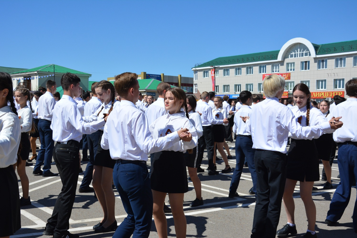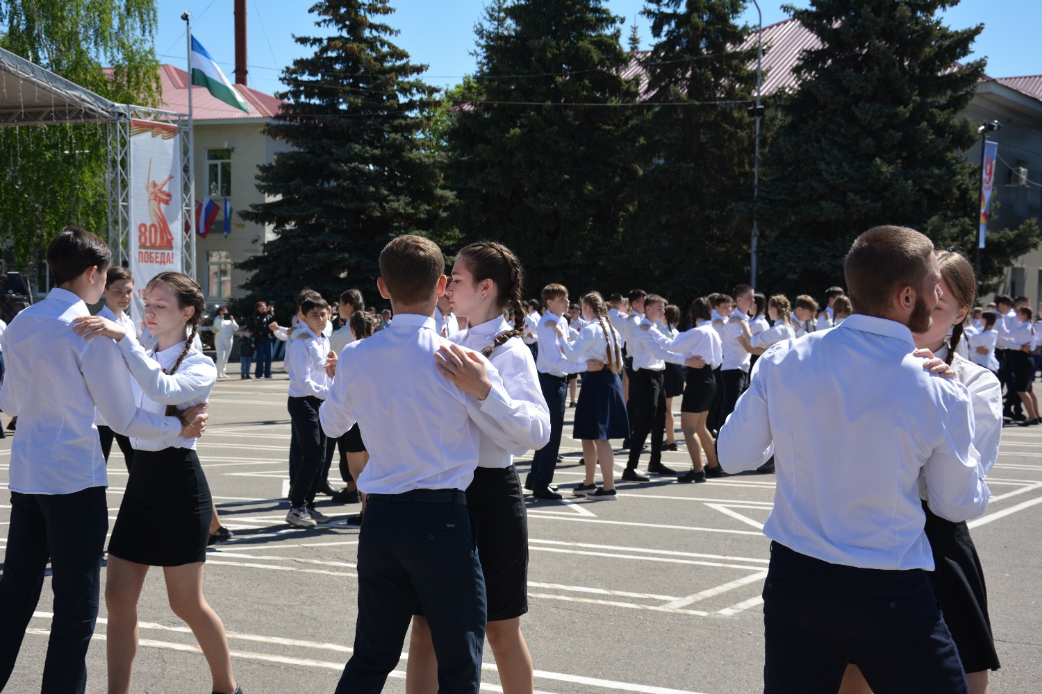 Школьники — будущее поколение, внуки и правнуки героев войны — кружились в ритме вальса, отдавая дань памяти подвигу своих предков.